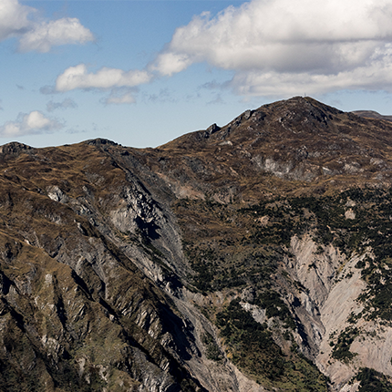 Successive periods of glaciation and recession, followed by erosion by Mata Au / Clutha River have shaped the Nanny Goat Estate landscape by creating distinct terraces of alluvial soils that are pastiche of loess, gravel, schist and mineral quartz. Generations of farming and the associated cultivation of lucerne and other feed crops have added organic matter to the wind blowen loessial topsoil providing us with a nice balance between vine vigor and free draining attributes.